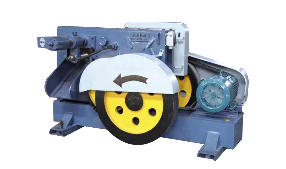 利用三相異步電機驅動偏心軸傳動,由偏心軸傳動帶動連桿,連桿帶動連座,連座將動模刀具一并帶動;定模刀具經固緊螺栓固定在機體上;棒料經送料架進入料口,由于受到動模刀具的橫向剪切力而被剪斷。此外,該機型還設有頂針機構,該機構可以很好的控制的長度。用該機型剪切的圓鋼可以降低加工成本,提高生產效率,加工精度高等優(yōu)點。